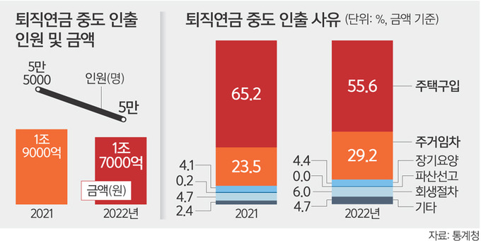 주택구입을 위해 퇴직연금을 중도인출하고 싶다면, 무주택자여야 해요. 그리고 본인 명의의 주택을 구입하는 경우에만 가능하죠. 주택구입을 위한 중도인출은 많은 분들이 선택하는 방법 중 하나인데, 실제로 2021년에는 주택구입이 전체 중도인출 사유의 65.2%를 차지했어요