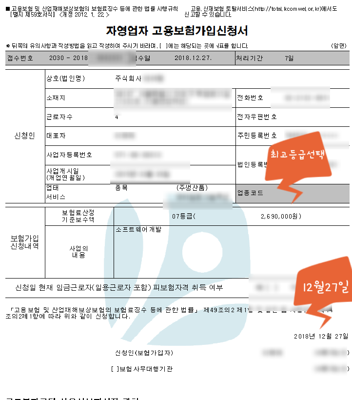 1. 고용보험 가입신청서 작성