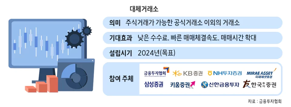 대체거래소는 전통적인 증권거래소와는 다른 방식으로 거래가 이루어지는 시스템을 말해요. 주로 개인 투자자들이 직접 거래를 할 수 있도록 지원하며, 거래 시간과 수수료 면에서 유리한 조건을 제공하는 것이 특징이에요. 이러한 시스템은 특히 빠른 거래와 낮은 수수료를 원하는 투자자들에게 인기가 많답니다.