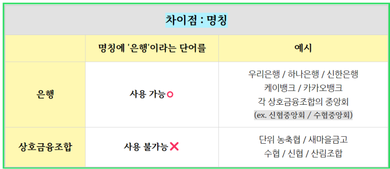신협과 농협의 주요 차이점