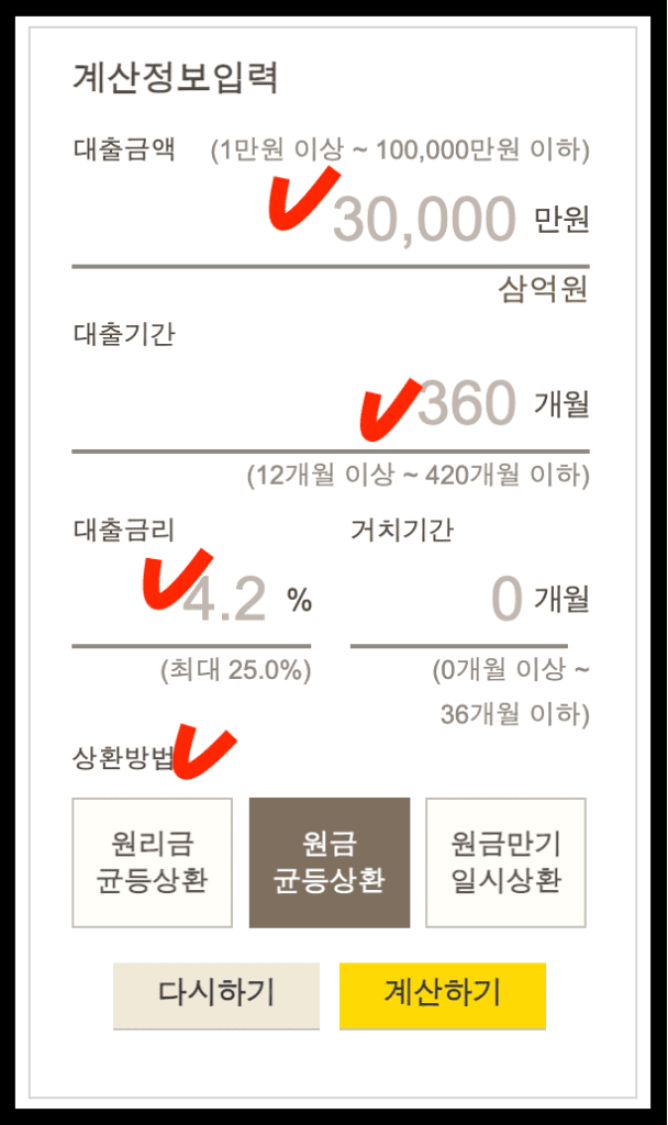 에서 볼 수 있듯이, 사용자가 원하는 조건에 맞춰 계산할 수 있어요.