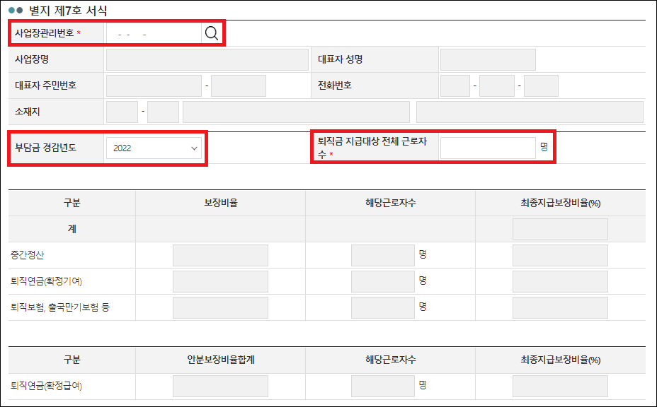 • Q: 경감 비율은 어떻게 결정되나요? A: 경감 비율은 사업장의 상황에 따라 다르며, 퇴직금 지급 보장 비율에 따라 결정돼요.