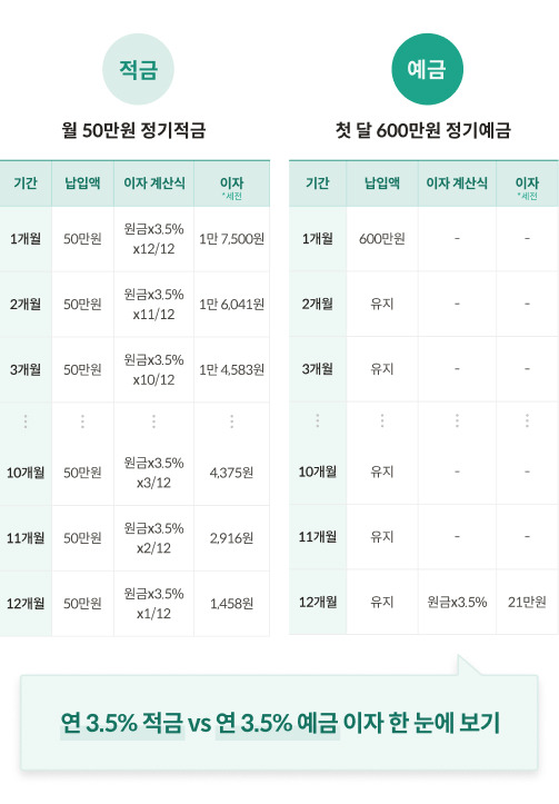 정기적금은 매달 정해진 금액을 저축하기 때문에, 저축 습관을 기르기에 좋고, 짧은 기간 내에 목돈을 만들 수 있는 장점이 있어요. 이자율이 높기 때문에 기간이 길어질수록 더 많은 이자를 얻을 수 있죠. 하지만 중간에 해지할 경우, 이자가 줄어들 수 있다는 점은 유의해야 해요.