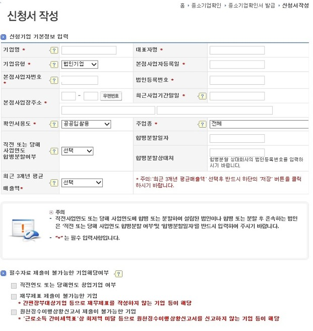 3. 신청서 작성 : 신청서에는 회사명, 대표자명, 사업자 등록번호 등 기본 정보를 입력해야 해요.