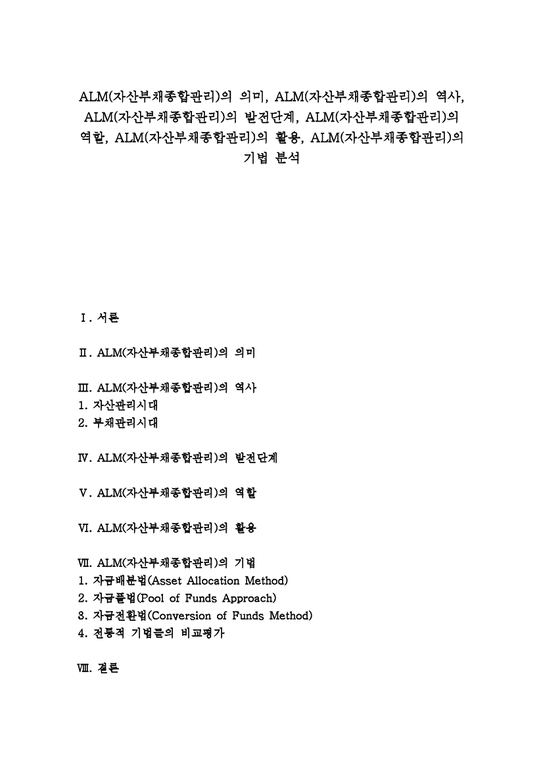 ALM은 Asset Liability Management의 약자로, 자산과 부채를 종합적으로 관리하는 기법이에요. 금융기관에서는 자산과 부채의 균형을 맞추는 것이 매우 중요하죠. 특히 금리 변동이나 유동성 리스크를 관리하는 데 큰 역할을 해요. ALM을 통해 금융기관은 안정적인 수익을 추구하고, 리스크를 최소화할 수 있어요.